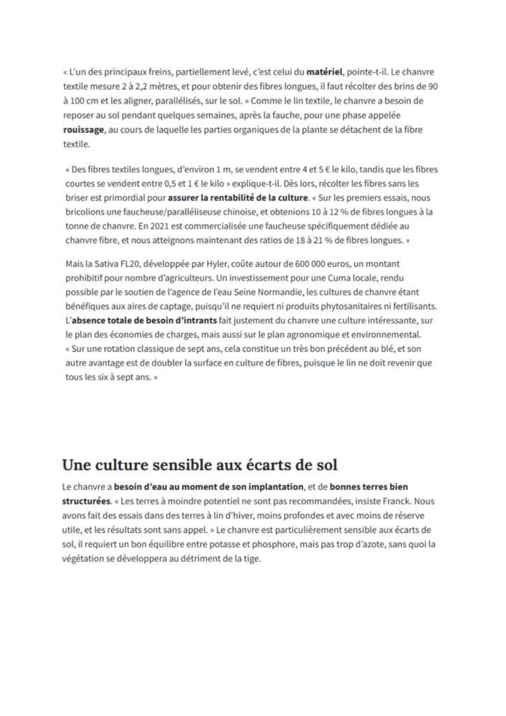 UNE FILIÈRE CHANVRE TEXTILE EN NORMANDIE ? – L’agriculteur Normand