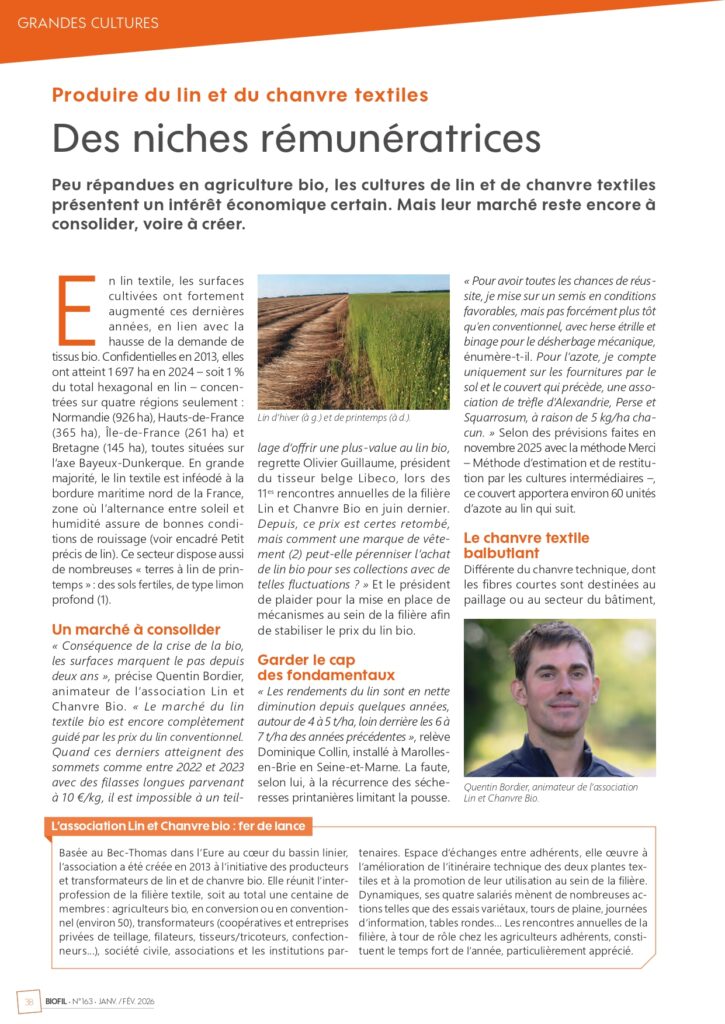 Elle répond à la question : « Comment se développent les filières lin et chanvre bio ? »